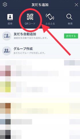 追加方法のリストから「QRコード」をタップしてQRコードリーダーを起動します。